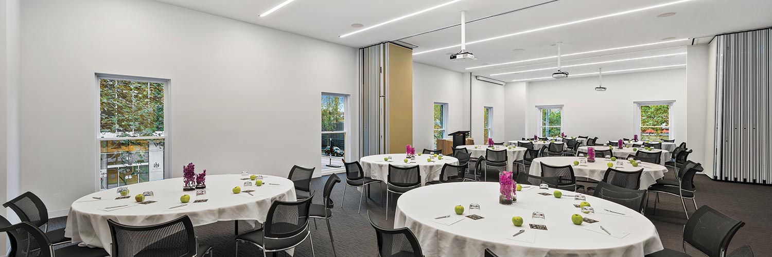 With three versatile function spaces to choose from all featuring natural daylight and built-in Avs, there is a room to meet every occasion.  A range of dining options are also available including working lunches or post conference drinks and cocktails, at our café and bar St Mark’s Road Co. While guests who are travelling from afar, onsite accommodation is available featuring 206 rooms including 23 suites.